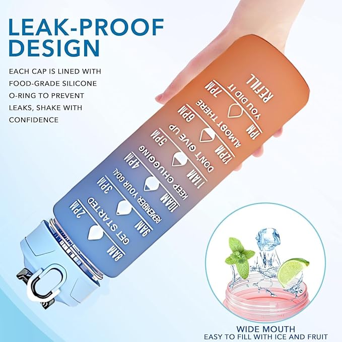 Generic Drinking Water Bottles Fitness Sports With Time Marker, 900 ml, Multiple Colors, Motivational Drinking Bottles (Blue+ Orange), XH-2081