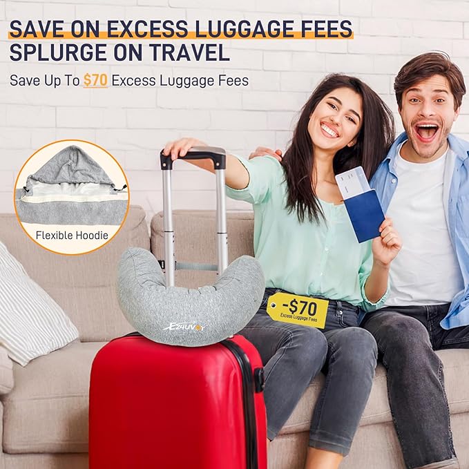 - Free Luggage Space &New Hooded Design- We know how cumbersome luggage and bulky travel pillows can dampen the excitement when you embark on a journey. That's why we designed this innovative stuffable neck pillow. No filler, featuring a top zipper, allowing you to stuff it with clothes or towels, freeing up valuable space in your suitcase and sparing you from lugging around a clunky pillow. The cozy hoodie can cover your eyes to isolate light, providing you with a restful sleep on the journey.