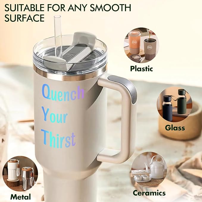 - Versatile Application: These decals for tumblers can adhere to any smooth surface, including windows, plastic, metal, and glass. Stickers adhere firmly but can also be easily removed without leaving any residue, allowing you to change your designs whenever you want