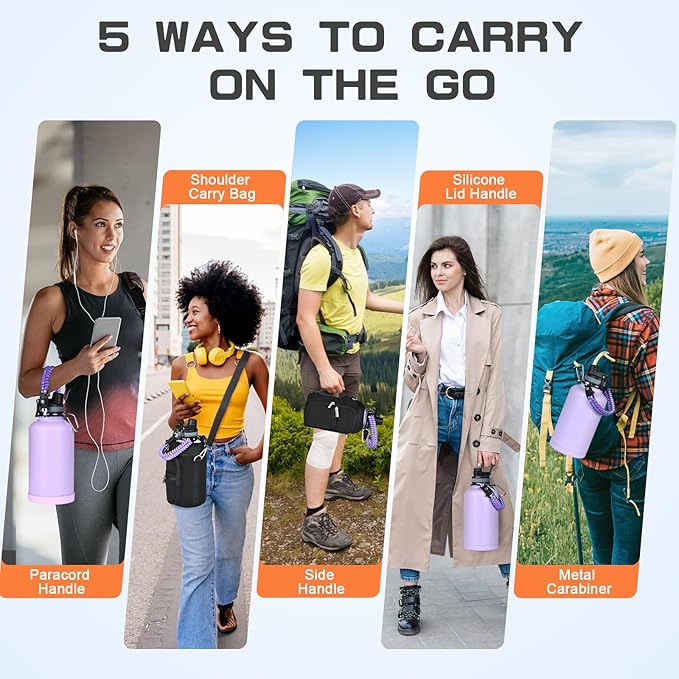 - Full-function Paracord - With brilliant matching colors brings a touch of youthful vibe to the jugs. As a sturdy survival handle it comes with a carabiner, compass, fire starter and whistle, perfect for your wild adventures.