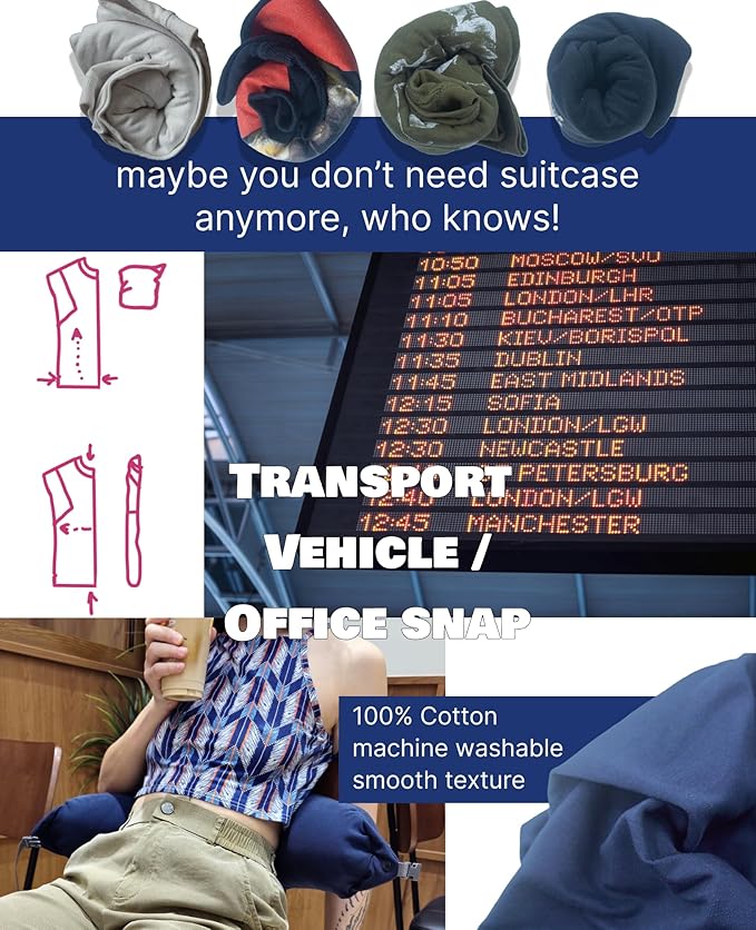 - EXTRA LUGGAGE CAPACITY: Easily stuff the pillow with clothes to transform it into additional luggage, avoid overweight trouble, perfect for savvy travelers. Stuffable up to 6 T-shirts, or even a puff-jacket and several socks.