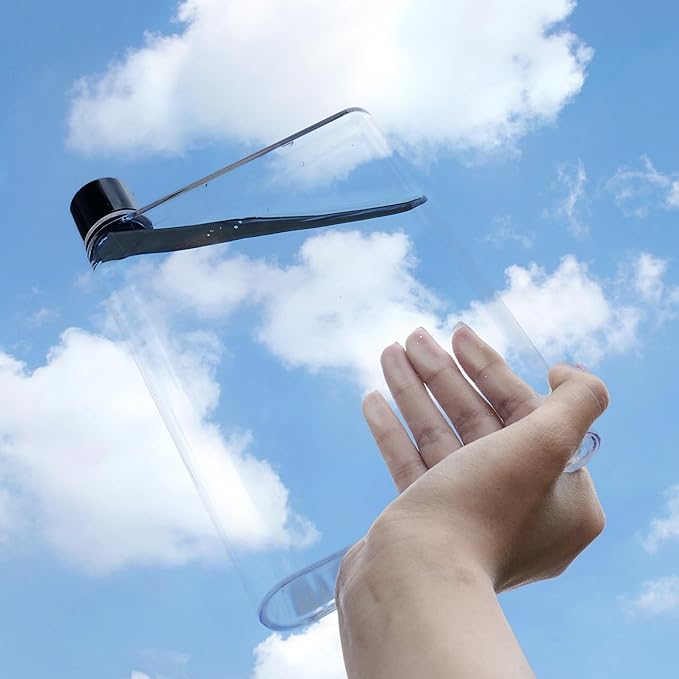 - HIGH QUALITY MATERIAL:The flat water bottle is made of high quality plastic,lightweight and sturdy,unaffected by bumps or drops on the move, and reusable.In addition the transparent flat slim water bottle travel allows you to quickly identify the contents and easily know how much water is in the water bottle.