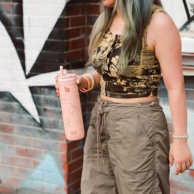 BOTTLE BOTTLE Insulated Water Bottle 24oz with Straw Lid and Handle for Sports Travel Gym Stainless Steel Water Bottles Double-Wall Vacuum Metal Thermos Bottles Leak Proof BPA-Free