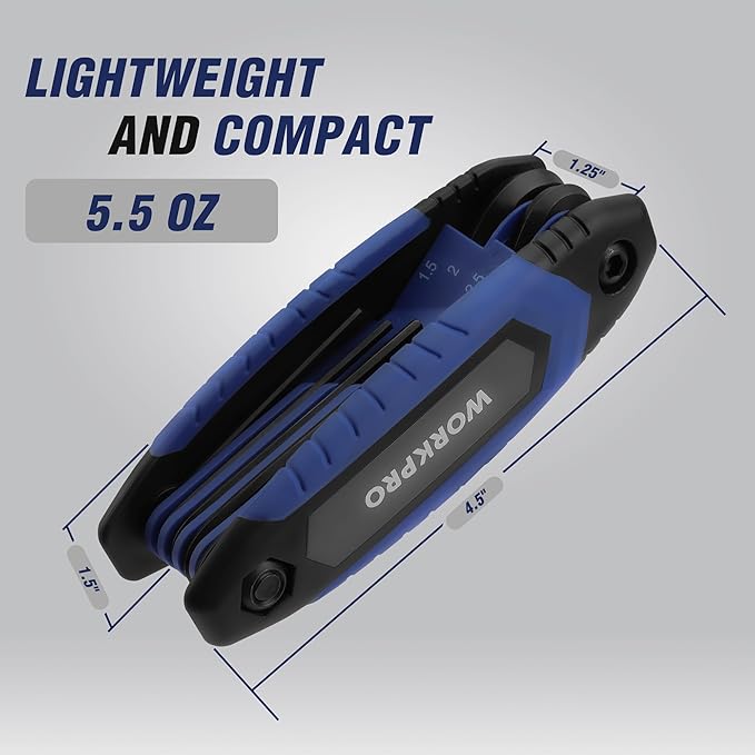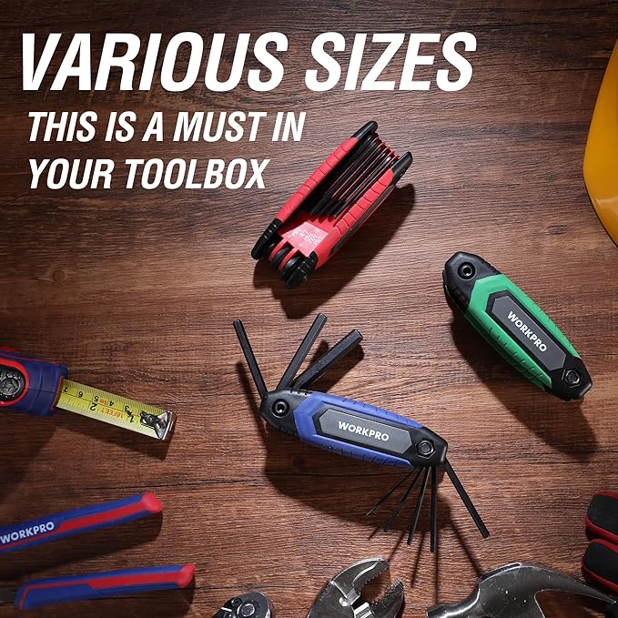 - Available Size: 3-pack folding allen wrench set contains 8-piece metric hex key set (Blue), 9-piece SAE hex key set (Red) and 8-piece torx hex key set (Green). Key Sizes: 1.5mm, 2mm, 2.5mm, 3mm, 4mm, 5mm, 6mm, 8mm, 5/64", 3/32", 7/64", 1/8", 9/64", 5/32", 3/16", 7/32", 1/4", T9, T10, T15, T20, T25, T27, T30, T40. This allen key set with different sizes is perfect for basic home repair, furniture assembly and various maintenance tasks