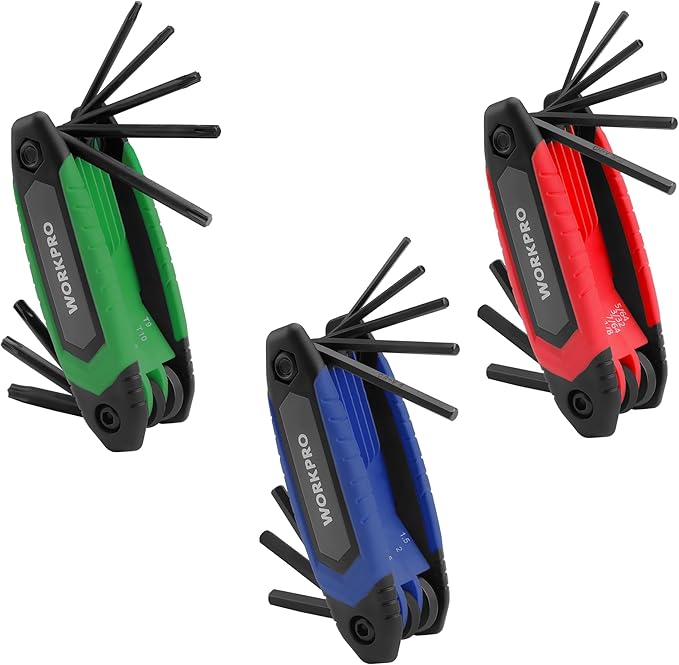 WORKPRO 25-Piece Folding Allen Wrench Set, SAE, Metric, Torx Hex Key Set Included, 3 Pack Portable Allen Key Set for Basic Home Repair and General Applications