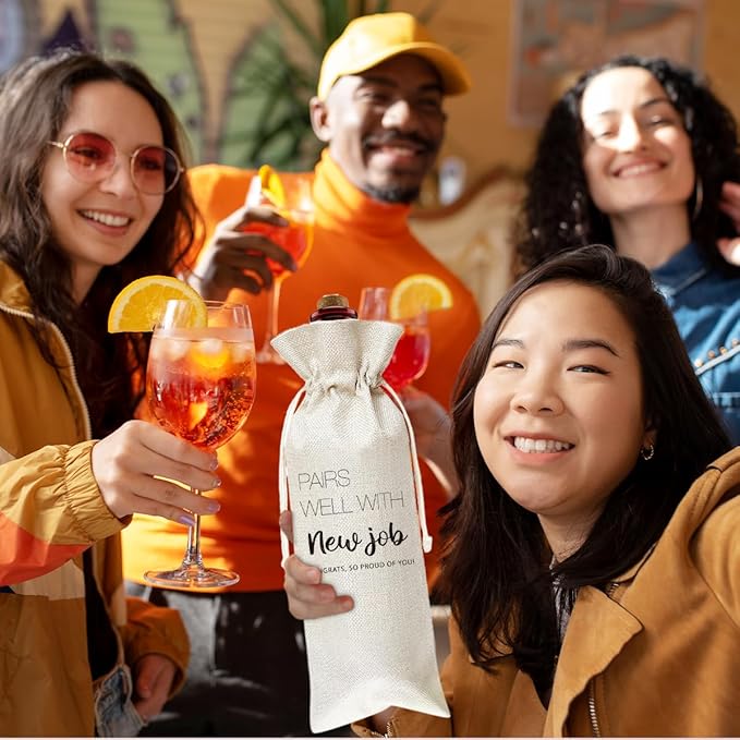 New Job Gifts Burlap Wine Bags Gift for Woman Men Friend Boss Coworker, Reusable Wine Gift Bags with Drawstrings for Congratulation Thanksgiving Christmas Appreciation Party Home Storage - 03