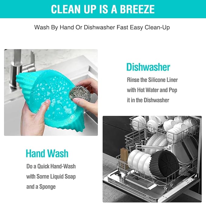 - EASY CLEANUP & DISHWASHER SAFE: Our silicone tray liners are great for people who dislike having to scrub their air fryer after each use and making you more willing to use the air fryer and enjoy cooking more. No more soaking food after cooking with non-stick silicone baskets inserts. Cleanup is a breeze, just remove the liner, rinse it or toss it in the dishwasher. The liners also help to protect the basket from scratches and food residue, extending its lifespan.