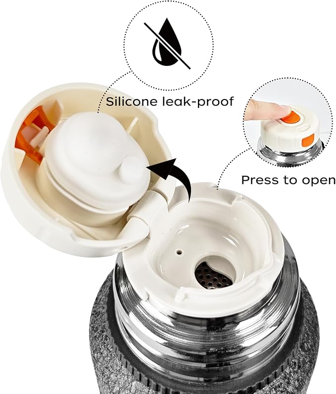 - Leak-Proof Design: The bottle has a leak-proof cap and silicone gasket to prevent spills, making it ideal for travel, gym, or outdoor activities.