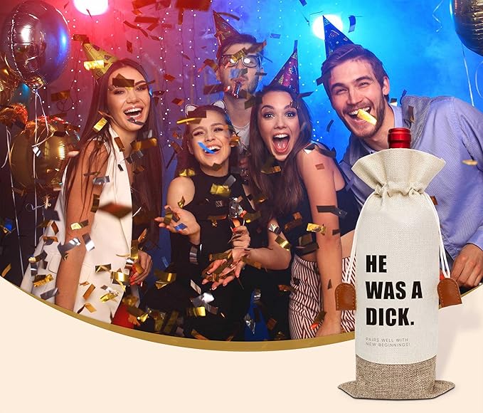 Funny Divorce Gifts Wine Bag, Divorce Gifts for Women, Wine Champagne Bottle Gift Bag, Cotton Linen Wine Gift Bag With Drawstring, New Beginning Gifts Break Up Gifts for Divorce Party-12