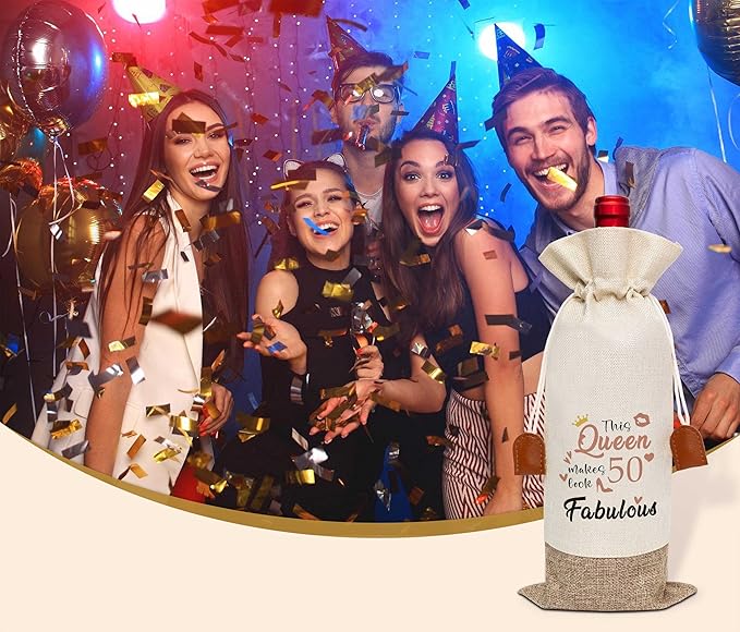 Funny 50th Birthday Wine Bag, Cotton Linen Wine Gift Bag With Drawstring, Wine Champagne Bottle Gift Bag, 50th Birthday Gifts Wine Bag for Woman Her Friend Sister, 50th Birthday Party Favors-26