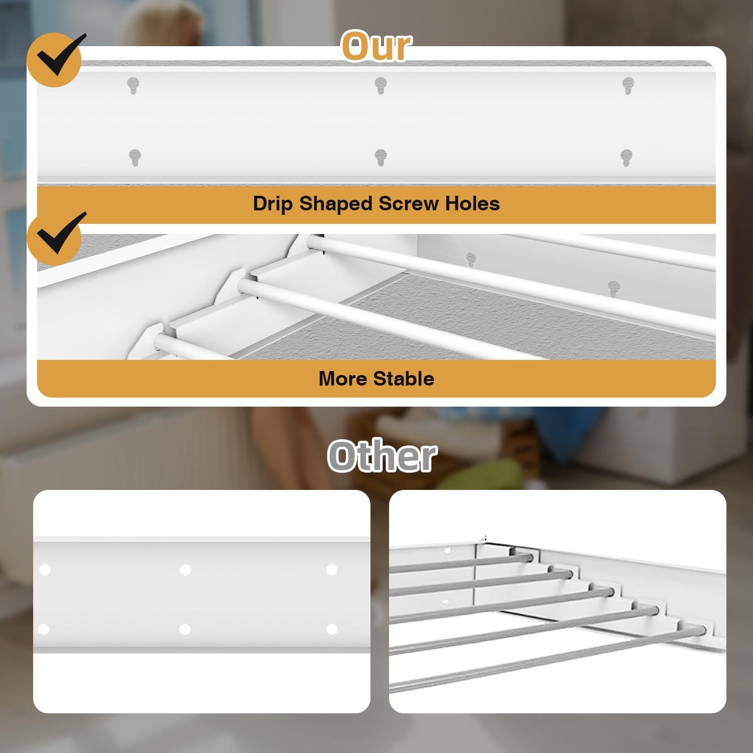 Laundry Drying Rack Collapsible, Wall Mounted Clothes Drying Rack, Space Saving Drying Rack for Laundry, 40" Wide, 16.5 Linear Ft, 5 Aluminum Rods, 60 lb Capacity (White 40")