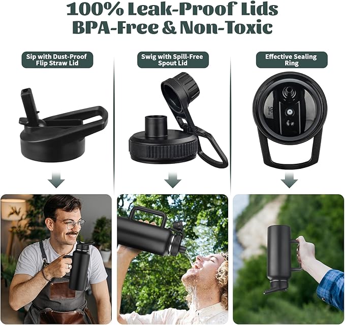 - 💦【Perfect Travel Companion】This 32 oz coldest water bottle with handle comes with 1 x straw lid, 1 x spout lid, 2 x straws, 1 x straw brush, and 1 x Bottle brush, making it the perfect kit for on-the-go hydration. Great for workouts, travel, or as your office companion. We value customer satisfaction and offer a 100% satisfaction guarantee. If you encounter any issues with the insulated bottle, please contact us.