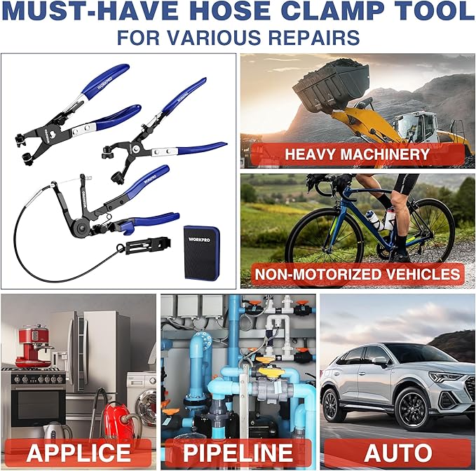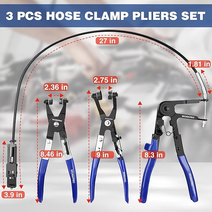 - 3PCS Professional Hose Clamp Pliers:Includes flat band hose clamp pliers, angled hose clamp pliers, and long-distance wire spring hose clamp pliers, specifically designed for hard-to-reach areas and tight spaces, ensuring easy removal and installation of hose clamps