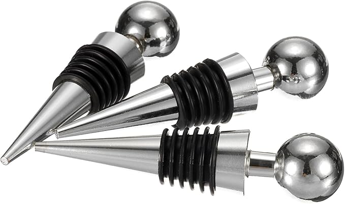 uxcell 3 Pcs Wine Bottle Corks, Vacuum Wine Bottle Stopper, Wine Stopper with Rubber Reusable Wine Corks, Suitable for Standard Bottle, Silver
