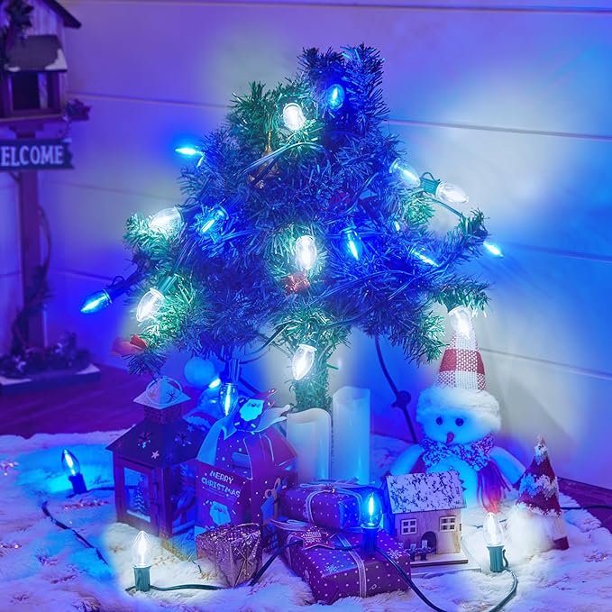 Brightown 25 Pack C9 LED Christmas Light Bulbs, Blue and Pure White Plastic C9 Shatterproof LED Bulbs Replacement for Christmas String Lights, E17 Intermediate Base