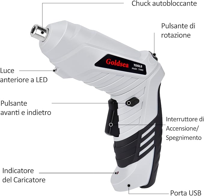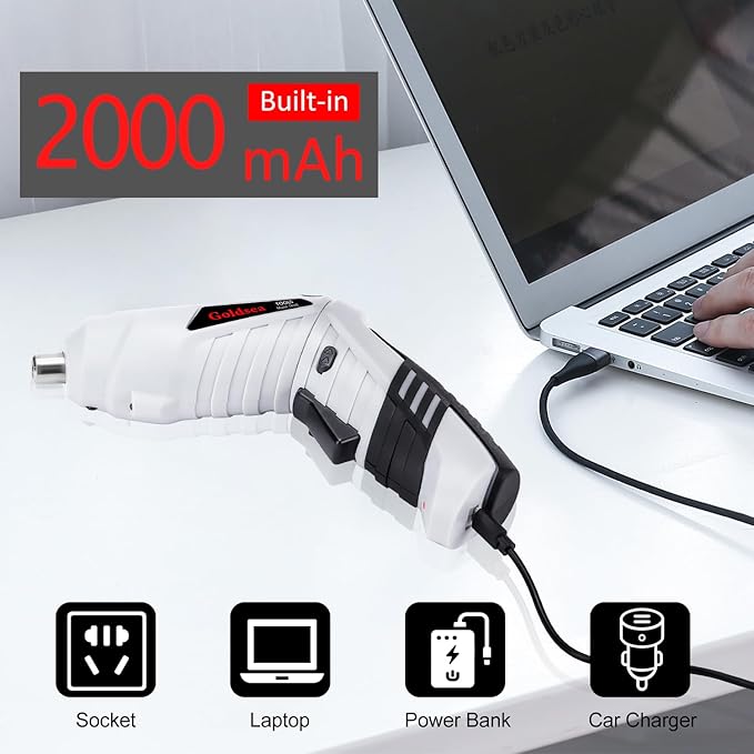 - Electric Manual 2in1 Driver: The Goldsea electric screwdriver can be used manually or electric depending on the usage situation. The maximum electric torque is 3.5Nm, and the large capacity battery of 2000mAh improves work efficiency! (The resistance produced by each material will affect speed and then feel different torque.)