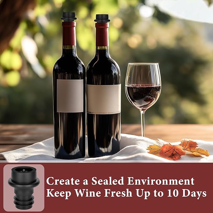 • EASY TO USE: 1, Insert the wine stopper into the bottle. 2, Position the wine pump over the stopper. 3, Pump out the air until you feel strong air resistance, indicating the bottle is sealed. 4, Remove the pump.