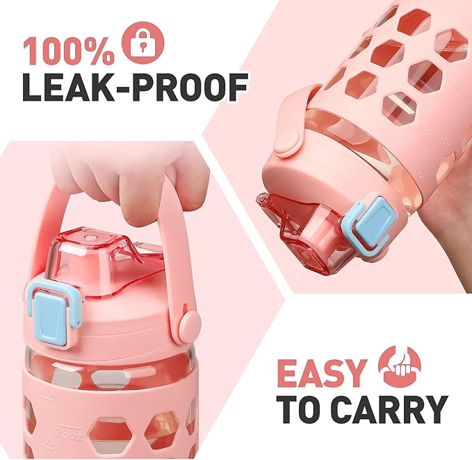 - SILICONE SLEEVES FOR BETTER GRIP:Use this water tumblers at home, office, take it to the gym or anywhere really! Our glass water bottles comes with a stylish silicone sleeve to offer you additional protection and to provide an extra grip to the bottle. The sleeve is removable, so you can use the water jug with or without it.