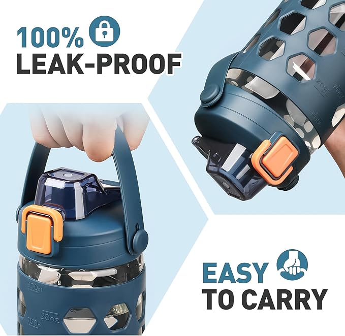 - SILICONE SLEEVES FOR BETTER GRIP:Use this water tumblers at home, office, take it to the gym or anywhere really! Our glass water bottles comes with a stylish silicone sleeve to offer you additional protection and to provide an extra grip to the bottle. The sleeve is removable, so you can use the water jug with or without it.