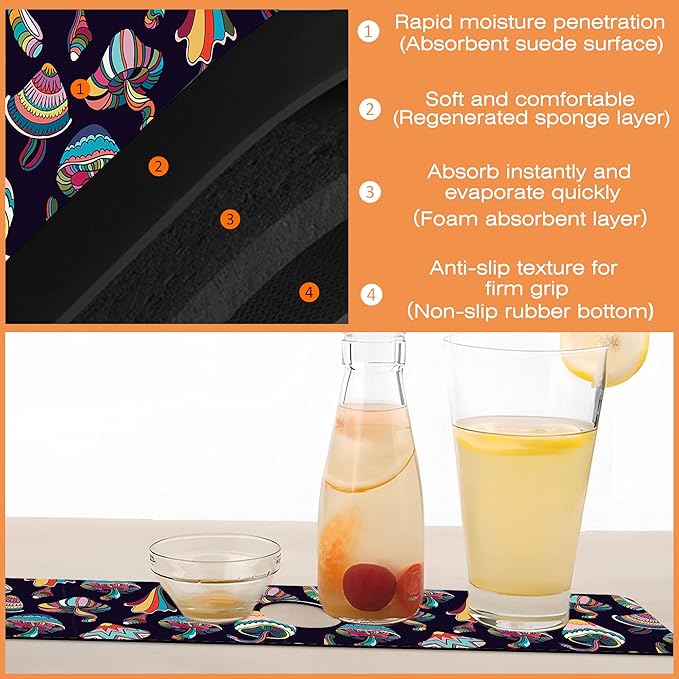 Kitchen Faucet Mat Magic Mushrooms Kitchen Sink Splash Guard Faucet Mat,1 PC Splash Guard Behind Faucet Drip Catcher for Kitchen,Sink Mat,Dish Drying Mat,Bathroom Faucet Mat 15.5""X5.5""