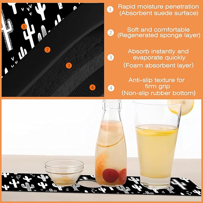 Kitchen Faucet Mat Fun Western Cactus Kitchen Sink Splash Guard Faucet Mat,1 PC Splash Guard Behind Faucet Drip Catcher for Kitchen,Sink Mat,Dish Drying Mat,Bathroom Faucet Mat 23.5"X5.5"