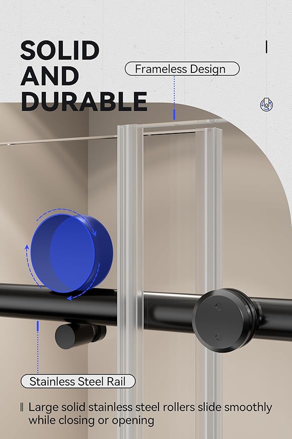 - Easy Installation:The adjustable width of this heavy bathtub sliding bathroom door makes it suitable even for small spaces.Reversible installation,the reversible left or right opening can adapt to the different layout of your bathroom,and easy to install.Step-by-step instructions,videos,all hardware are included.Just follow the installation process in the manual or watch the installation videos.NOTE:when installing the pulley,pay attention to whether the pulley is tightened on the glass