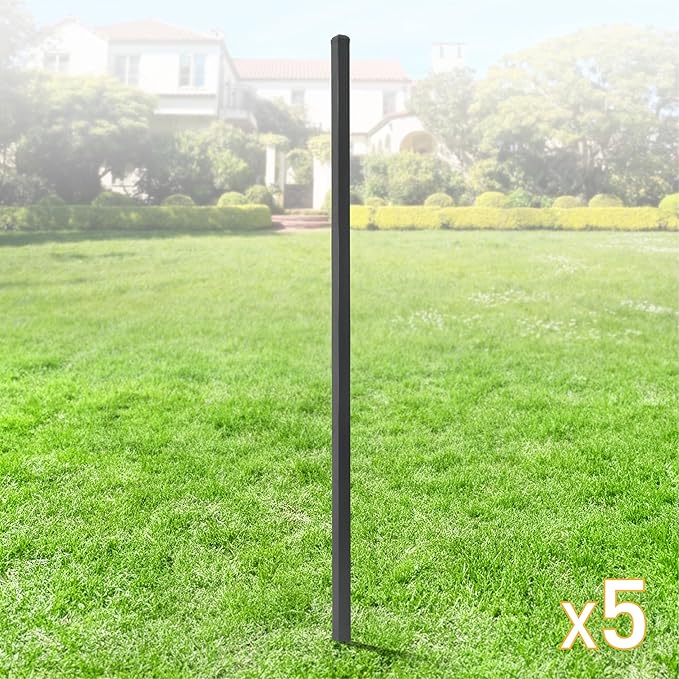Fencer Heavy Duty 7FT Outdoor Steel Fencing Border Post Pack of 5, 16 Gauge Anti-Rust Metal Fence, 2' Diameter Decorative Garden Fence
