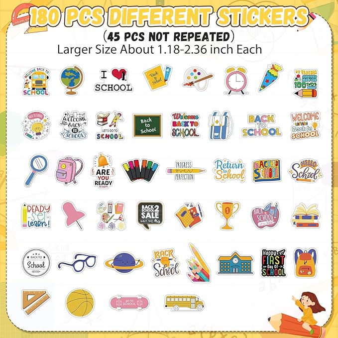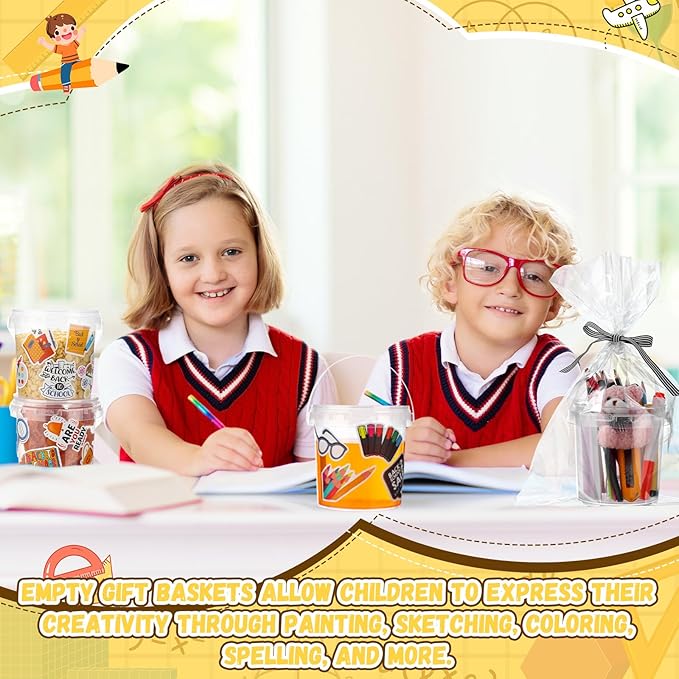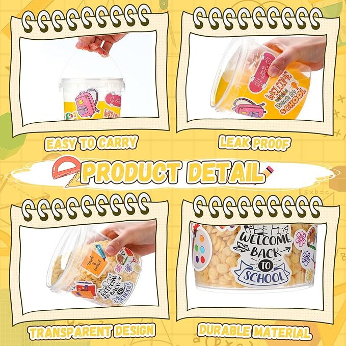 - Size Information: these 20 pcs plastic buckets with handles measure approx. 5.1 X 4.9 x 4.1 inches / 13 x 12.4 x 10.5 cm, capacity of 1 quart (about 32 ounces), enough for your daily use, also comes with 4 packs of back to school stickers, 45 pcs per pack, 180 pcs in total, 20 clear plastic bags
