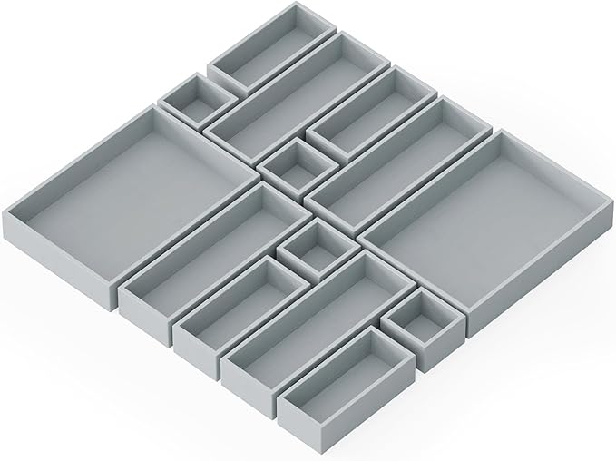 SpaceAid 14-Piece Bamboo Drawer Organizer Storage Boxes Set, Wood Tray Junk Drawer Organizers Multi-Use Divider Bins for Kitchen, Bathroom, Office Desk and Makeup Organization (14 Pack, Gray)