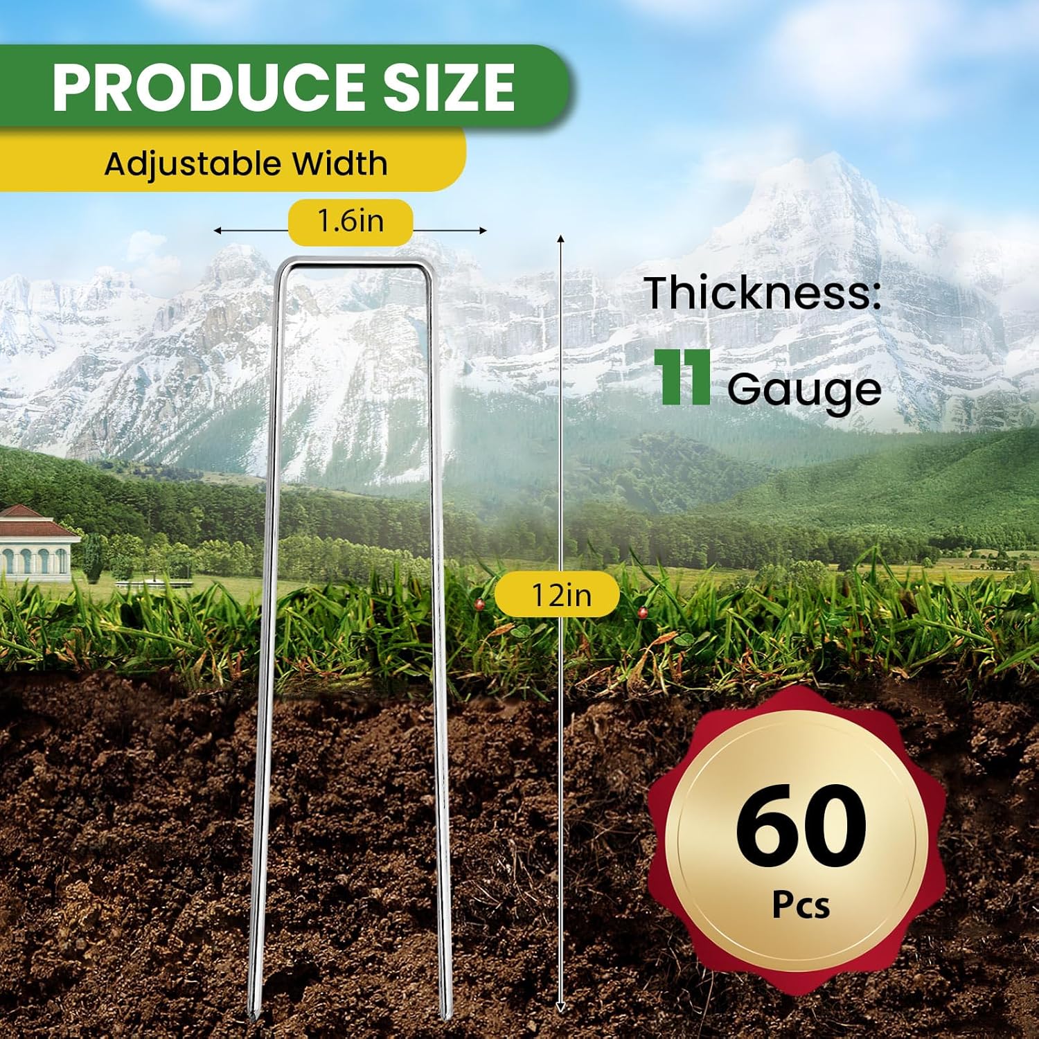 - Professional Grade Landscape Staples: Our set includes 60 garden ground stakes, each measuring 12 inches in length and 1.6 inch in width, to meet everyday outdoor needs