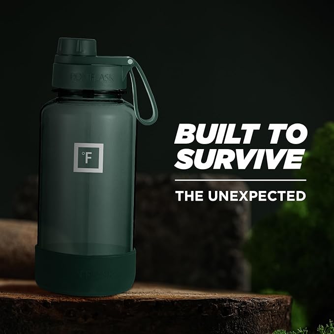 IRON °FLASK Clear Tritan Trekker Water Bottle with Chug Lid - Leak Proof & Lightweight for Gym, Hiking, Sports - Dishwasher Safe, BPA Free Plastic - Dark Pine, 32 Oz