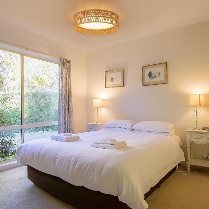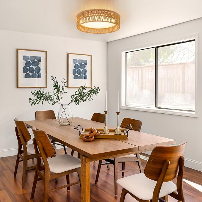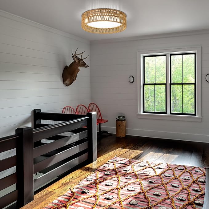 - Unique Design & Wide Application:The rattan flush mount ceiling light is a combination of modern and farmhouse style.The ceiling light fixture is perfect for the bedroom, hallway, entryway, small room, nursery, kitchen, living room, dining room, lakehouse, balcony, farmhouse, etc.