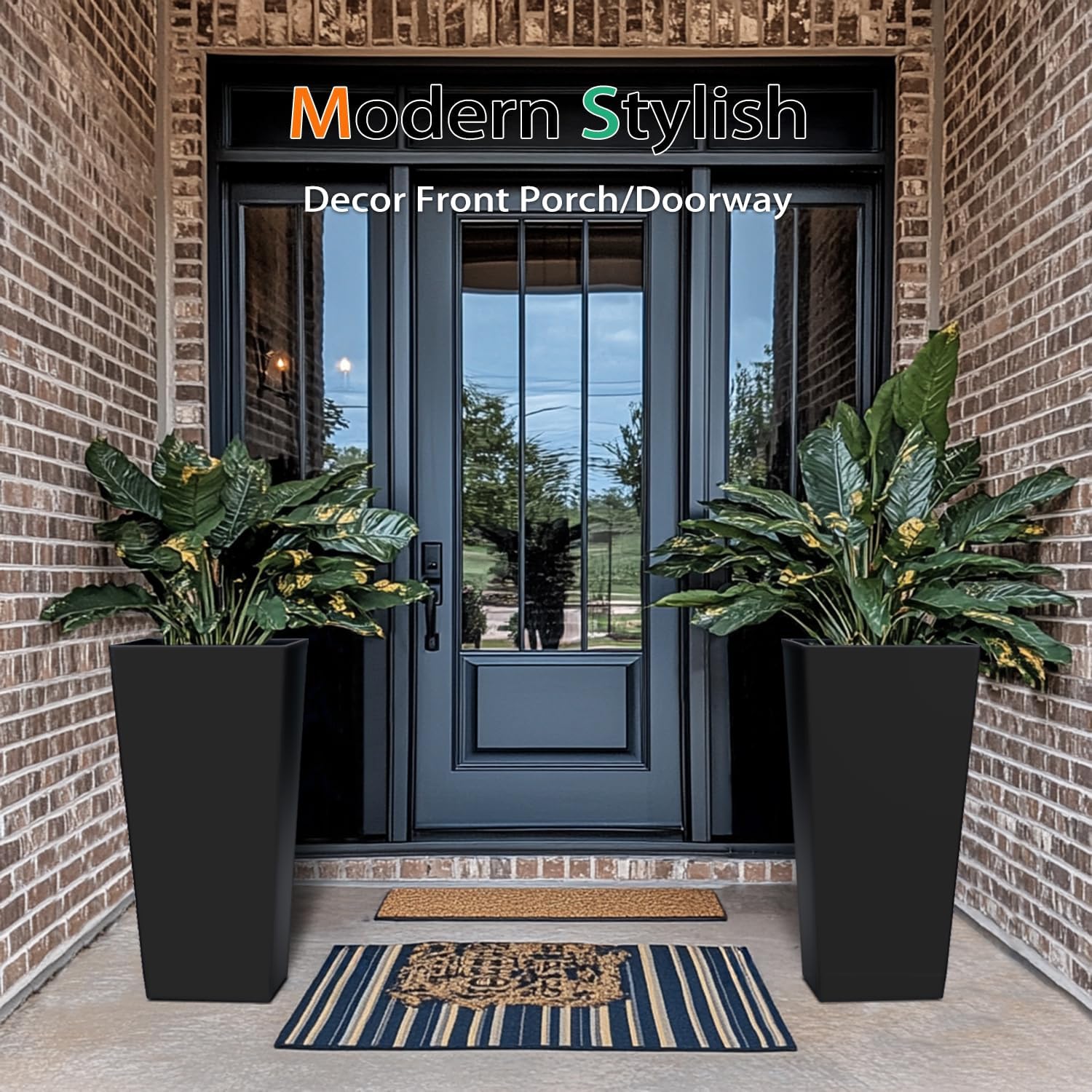 Tall Planters for Outdoor Plants, Large Resin Flower Pots for Garden, Front Porch, Patio, Indoor - Set of 2 (Black, 32 inch - 2 Pack)