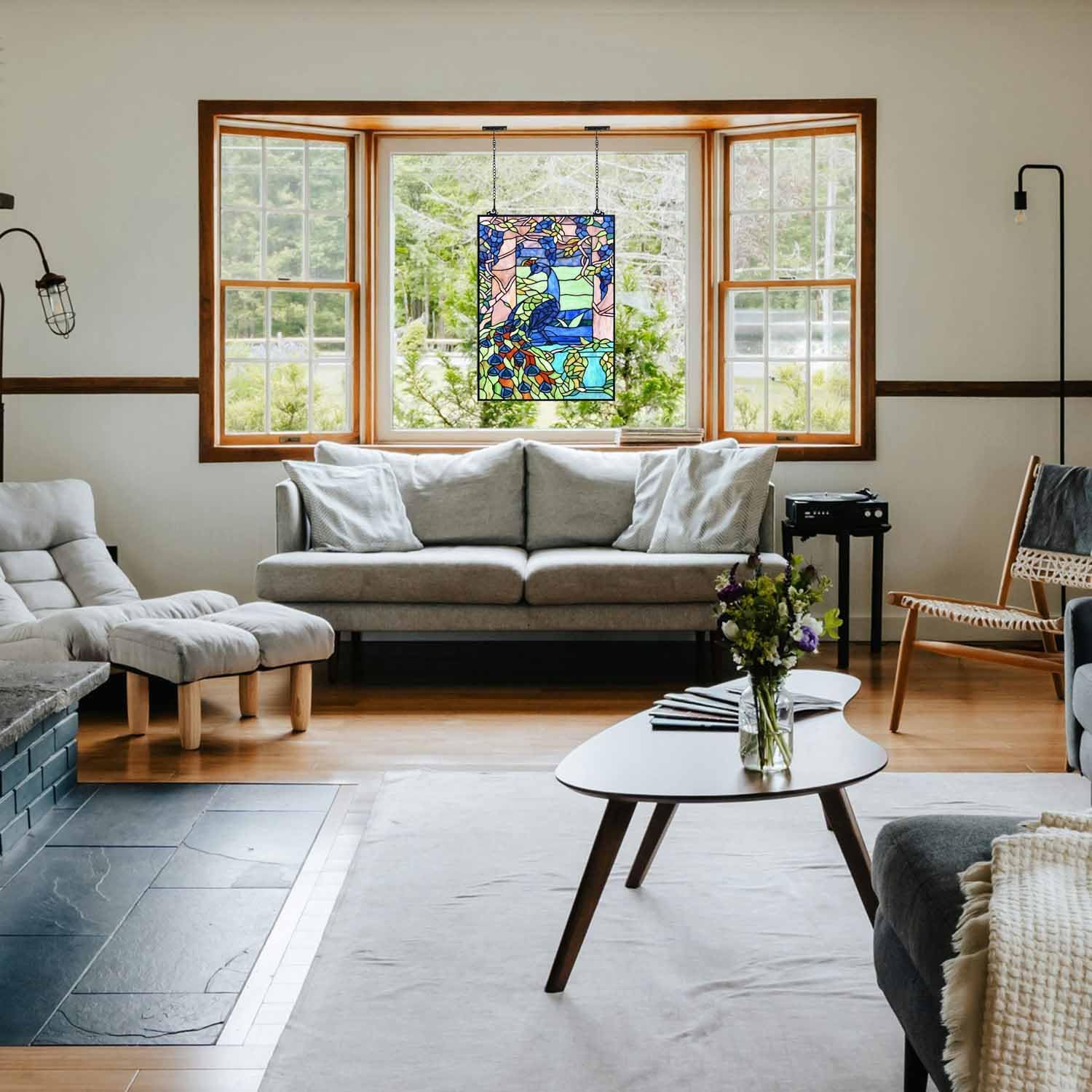 - Vibrant Colors: The rich and vivid colors of the stained glass are meticulously chosen to create a lifelike and captivating peacock and garden scene, adding a burst of color and elegance to any room.