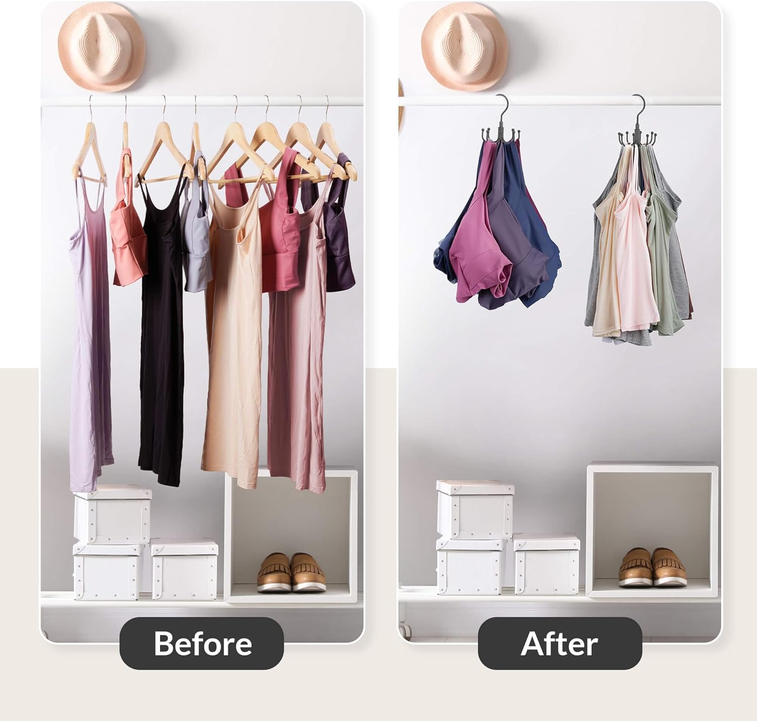 - Max 24 Capacity Tank Top & Bra Hanger: Our tank top and bra hanger features 8 hooks, each holding up to 3 bras or tank tops, for a total capacity of 24 items. This hanger is the perfect solution for organizing a large collection in a compact space.