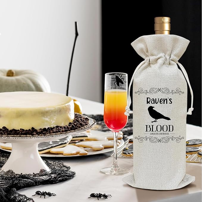 Halloween Wine Bag, Birthday Gifts for Women Men Son Dad Sister Mom, Witch Magic Thanksgiving Christmas Holiday Party Favor Funny Raven's Blood Wine Bag Decoration Supplies /42