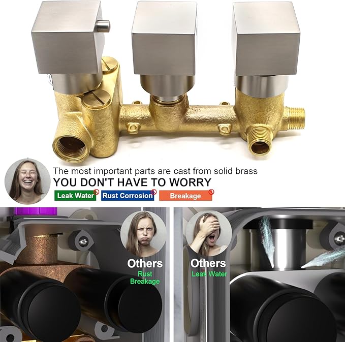 - 【Quality Shower Fixtures, Worry-Free Buying】US standard connections. Heavy duty solid brass shower head system with beautiful finishes for durability and reliability. The shower faucet set is guaranteed for 5 years from the date of purchase. If you have any questions about our products, please contact us via email.