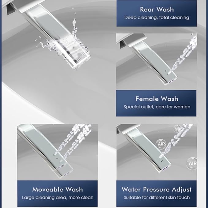 - * VIDEC Smart Toilet “ Multiple Intelligent Control Technology” provides two types of Control systems, External intelligent Remote Control can be placed at will, it is easy to manurer and convenient for accomplishing all of operations. Multifunctional side Control Knob rotates once to achieve a full set of services for butt washing/women washing -> flushing -> drying, so that when the home is out of power, you can perform power-off flushing/power-off cleaning by long-pressing, and the power outage will last for about a week.