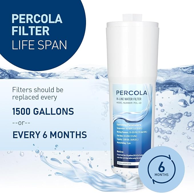 - Long Filter Life: Filter replacement is recommended every 6 months/1500 gallons, depending on water quality and usage.