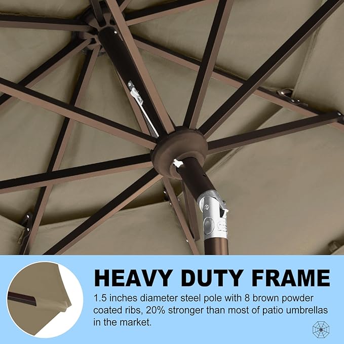 Eurmax USA 10-Year-Non-Fading 10Ft 3 Tiers Market Umbrella Outdoor Patio Umbrella Table Umbrella with 8 Ribs,Hand Crank and Ventilation (Taupe)
