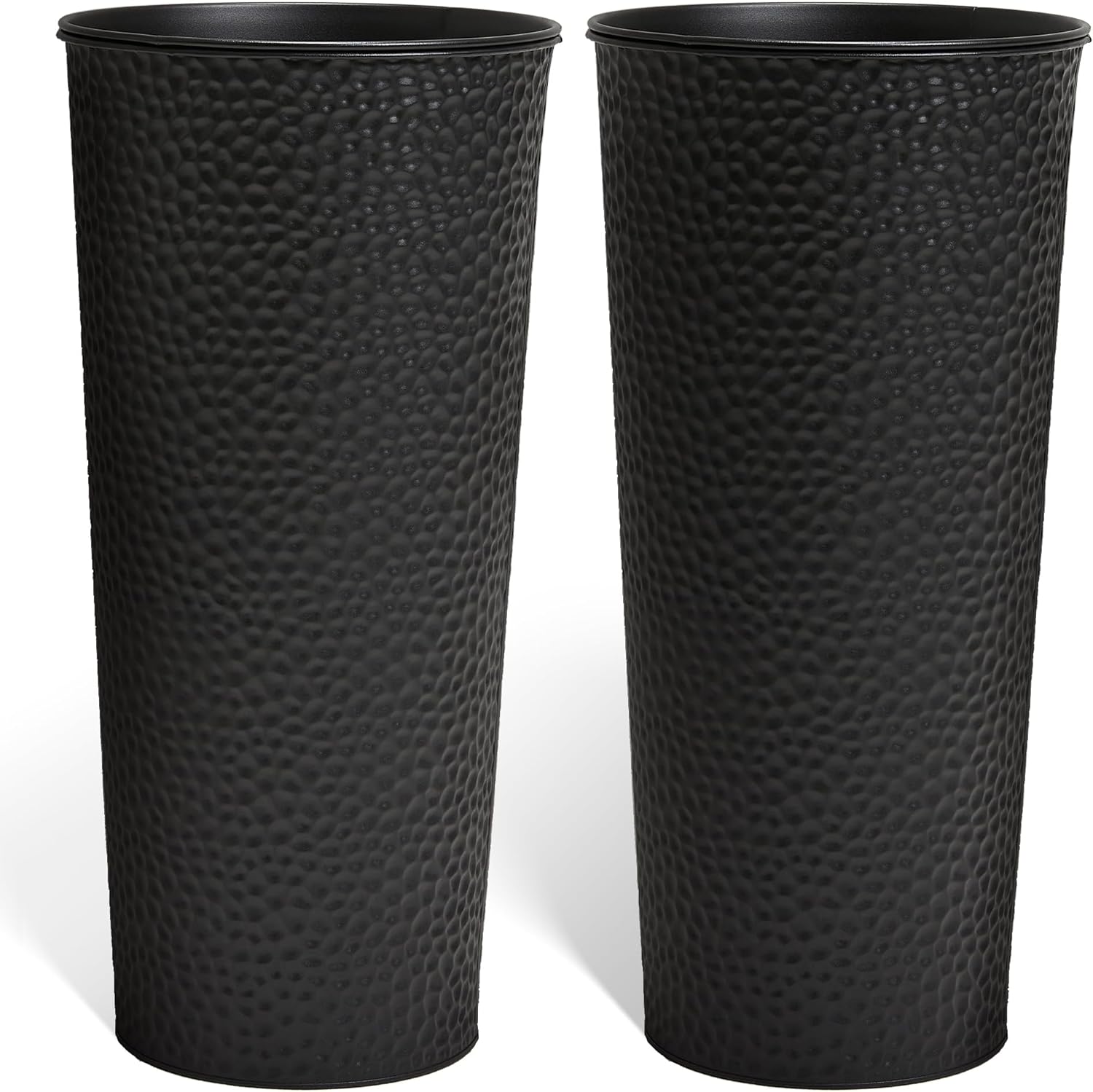 KOL 28" H. Tall Metal Cone Planters with Inside Pots 2-Pack, Black Hand-Hammered Large Decor Planter for Deck, Patio, Porch - Handcrafted Flower Pot - with Water Level Indicator - Indoor Outdoor Use