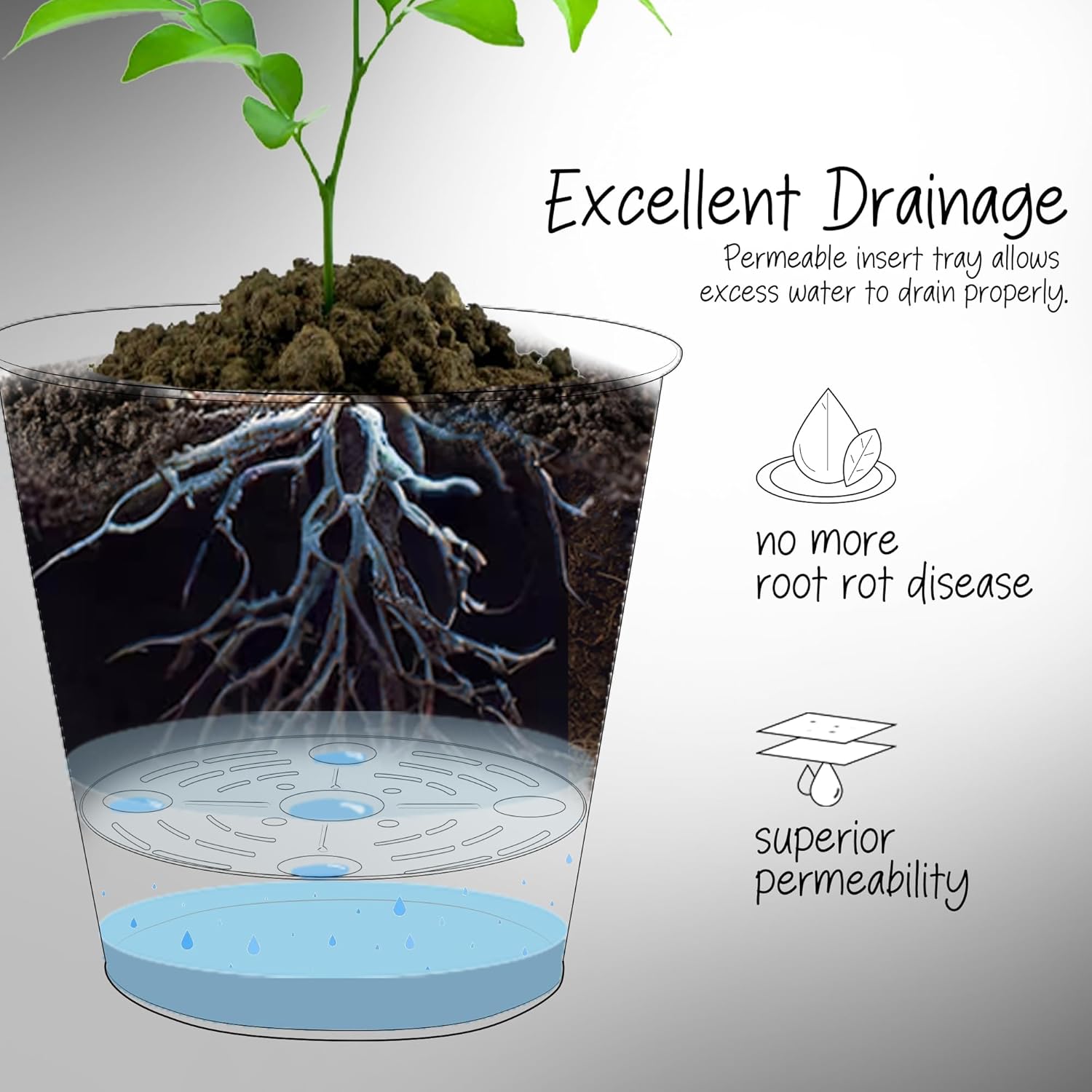 - INSERT POTS: Package includes 2 large planters and each planter comes with a steel insert pot to reduce the amount of soil needed to fill the containers. Each insert has a drainage plate to ensure that the plant roots have sufficient ventilation and respiration. And each insert has a cotton absorbent rope, which can prevent plant roots from rotting by absorbing excess water
