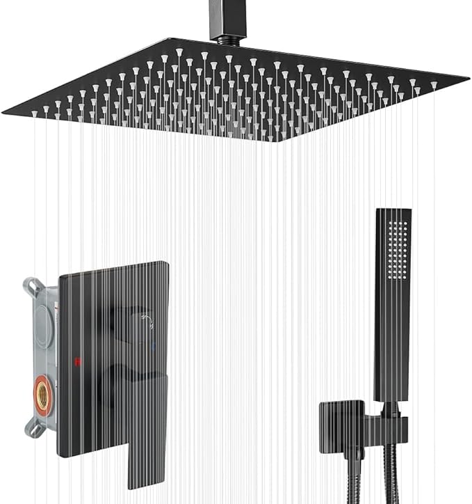 - Ultimate High Pressure Shower: 16 inches rain shower head and handheld shower using supercharging technology, effortlessly provides superior water pressure. Consistent powerful shower even under low water pressure. The large shower head can cover the whole body during the shower and easily rinse the foam on the body.