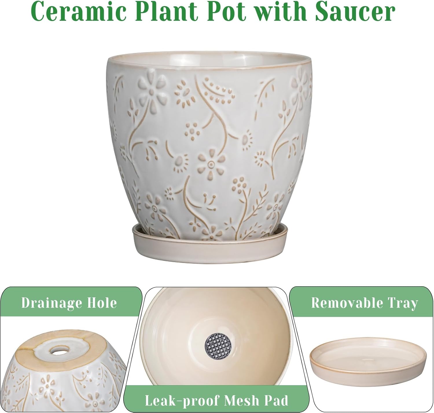 - Stylish Appearance: Our ceramic plant pot has a white main colour, a beautiful embossed petal and leaf pattern on the surface, elegant appearance making it ideal for home decor, garden decor and office decor