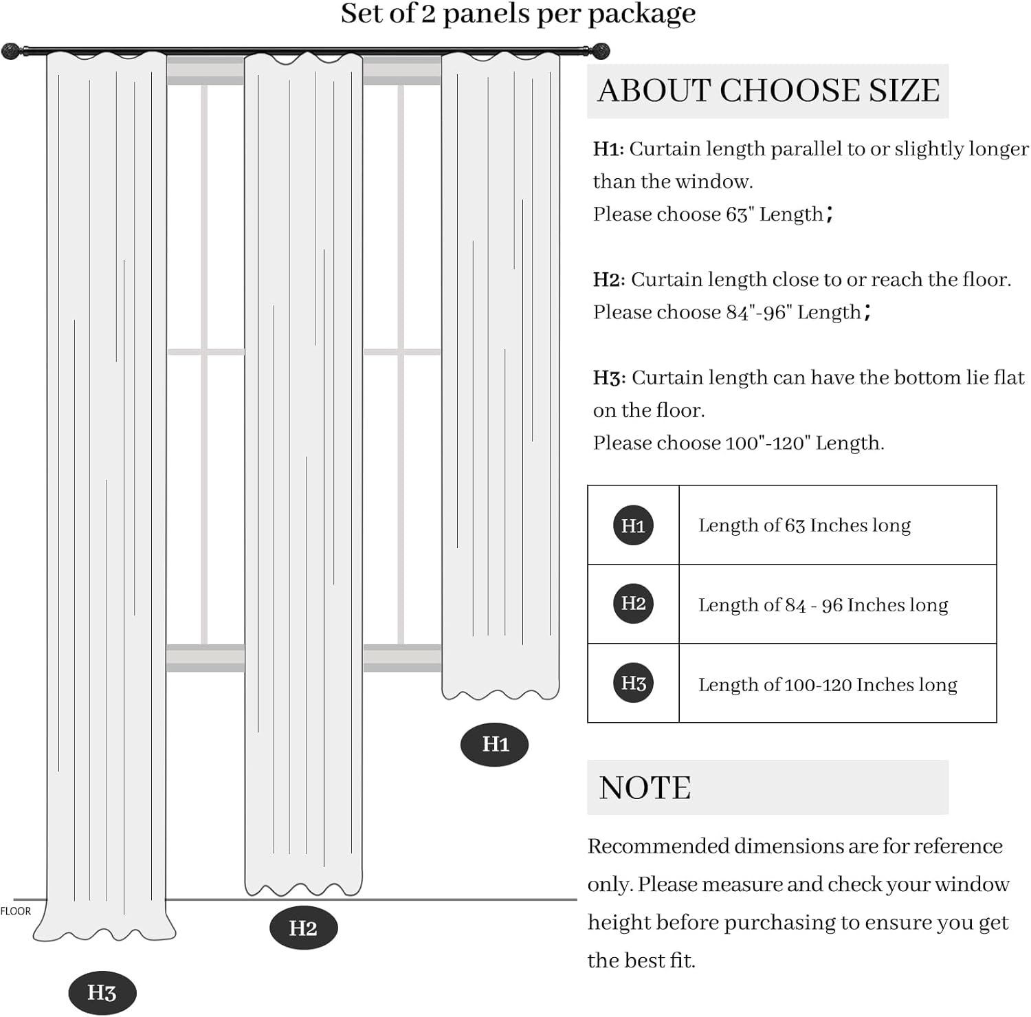 - Ready Made:Set of 2 pinch pleated curtain panels per package with 16 metal rings and 16 adjustable plastic hooks(The adjustable hook can raise and lower the height of the curtain by 1 inch),Each panel measures 40"W x 96"L,pair measures 80"W x 96"L