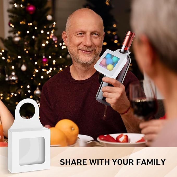 - Clear Window for Easy Viewing: White package for wine is designed with a single clear window, so you can see the contents clearly and intuitively, you can use wine bottle hanging gift box as a biscuit box, transparent snack box, chocolate box, bridesmaid gift box, holiday present box and more