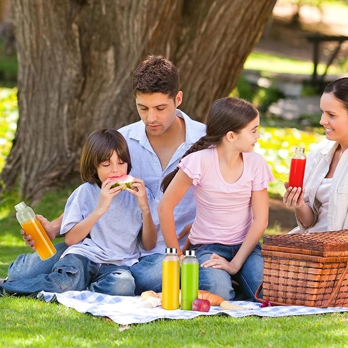 - GLASS BOTTLES FOR JUICING AND MORE: Durable stainless steel lid with air and water-tight seals, it’s completely airtight to keep your beverage fresh without any worry of spills. Throw this glass water bottle in your bag or car and get a healthy start to your day with a juice, smoothie, brew, ice tea, iced coffee, milkshakes, Kombucha. The 100% leak proof glass bottle will never leave a leaky mess no matter how you place it. The clear glass helps you quickly spot the drink you're in the mood for.