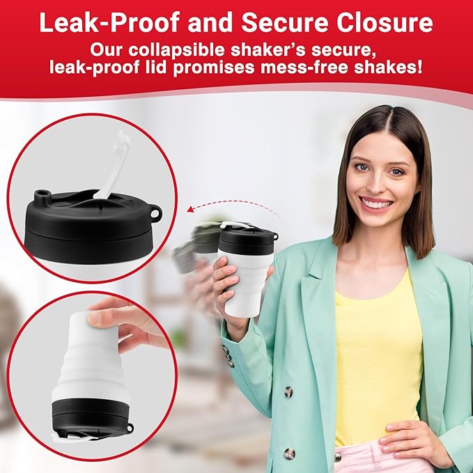 - SPACE-SAVING COLLAPSIBLE CUP DESIGN: Say goodbye to bulky shaker cups that occupy unnecessary space. Embrace the ultimate space-efficient solution with our mixer for protein shakes. Compact, lightweight, and versatile, our smoothie cup's innovative design folds down effortlessly. Our shaker cup ensures hassle-free storage and portability wherever you go.
