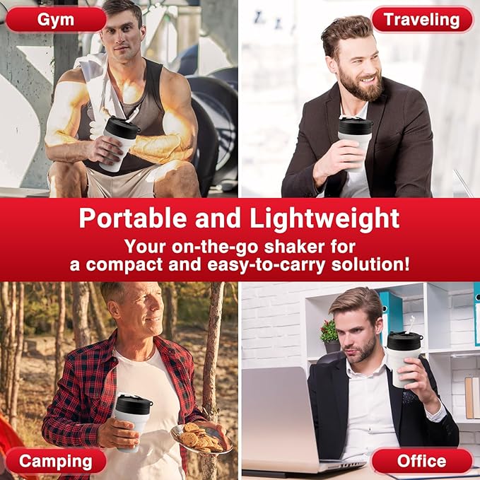 - PORTABLE AND LIGHTWEIGHT: Our protein shaker cup offers effortless portability wherever you go. With its compact and easy-to-carry features, our shakers for protein shakes are a perfect travel companion for people going to the gym, camping, office, or traveling.