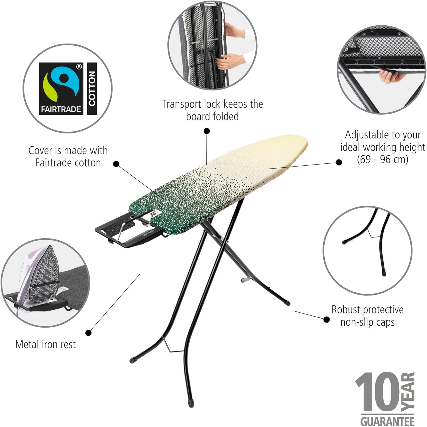 - High-Quality Materials and Design: Features a 100% Fairtrade cotton cover for a smooth, durable ironing surface, supported by a resilient foam layer for added comfort; The Stretch-System ensures a perfect, crease-free fit for efficient ironing